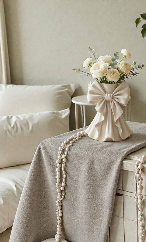 Coquette Kurdele Vazo – Zarif Pileli ve Şekillendirilmiş Kurdele Çiçek Vazosu